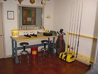 Lodge has a tackle room equiped with workbench and a 450 lbs